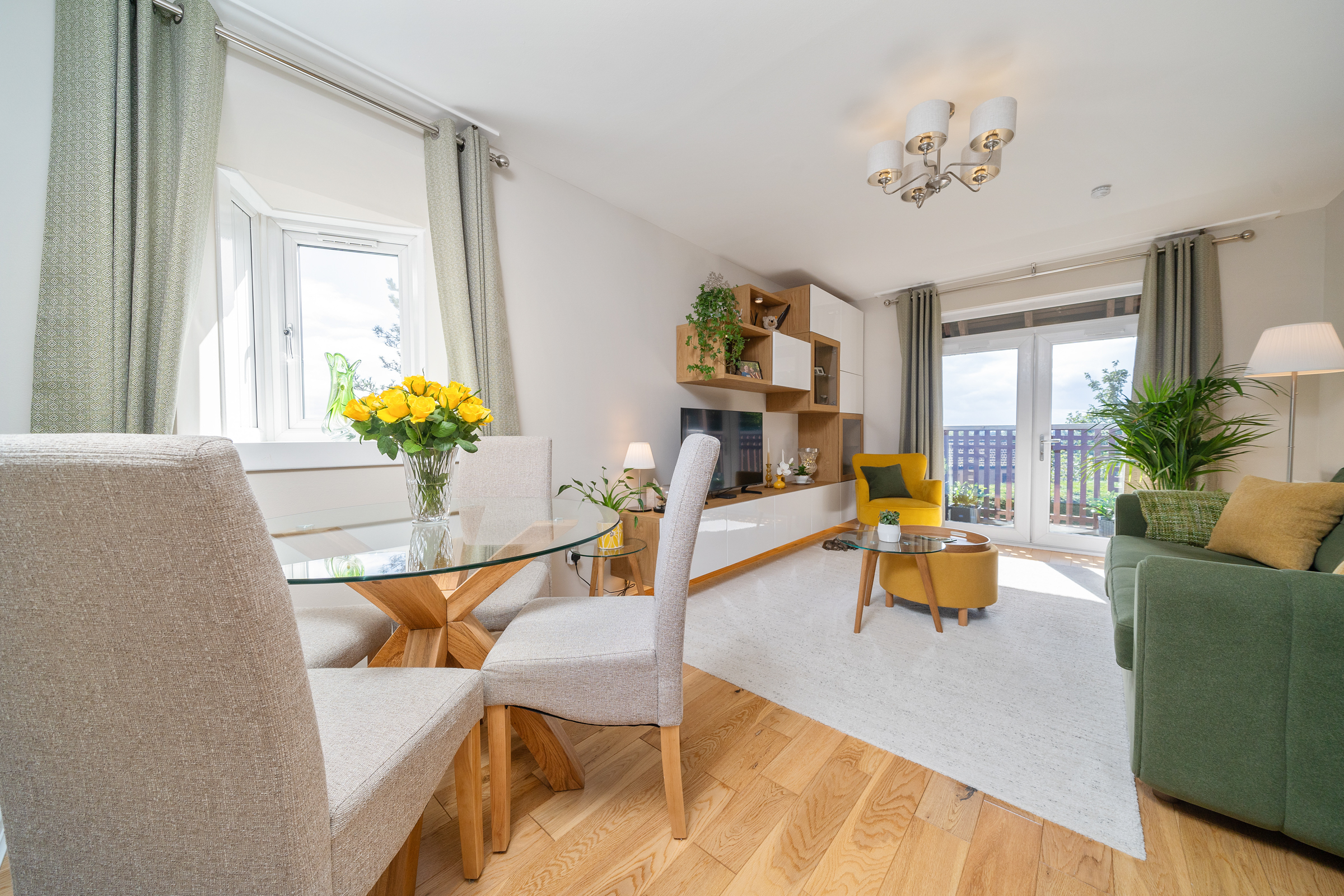 The generously sized lounge and dining area is filled with natural light, further enhanced by a charming Juliette balcony that adds both character and a touch of outdoor connection. A modern fitted kitchen sits just off the living space, providing ample workspace and contemporary units ideal for everyday living.