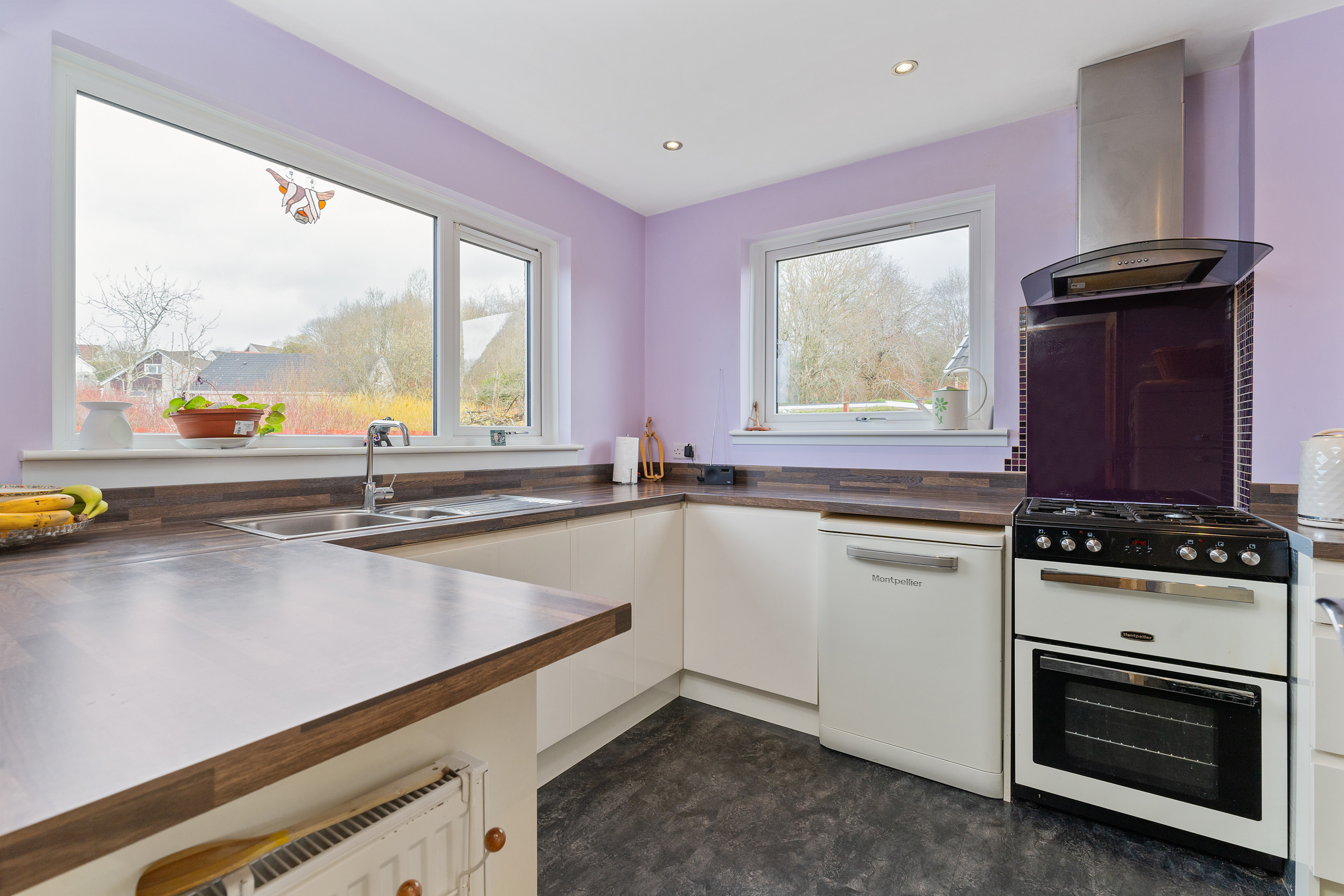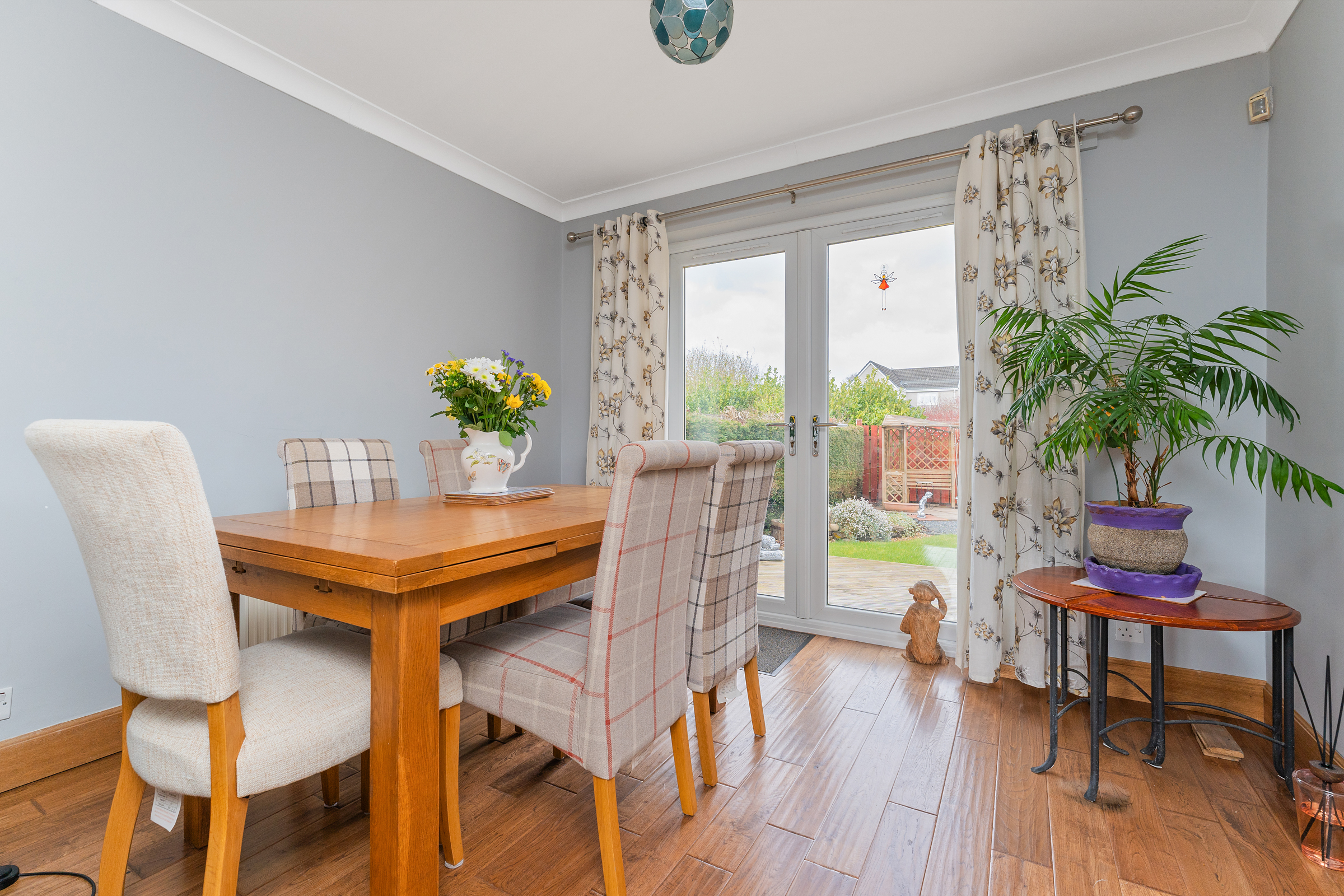 Internally, the accommodation comprises a welcoming entrance hallway with stairs leading to the upper level and a convenient WC. The bright and spacious lounge flows seamlessly through to the dining room, with French doors opening directly onto the rear garden, allowing for an abundance of natural light and easy indoor-outdoor living. The modern fitted kitchen offers a range of ample units and workspace, perfectly suited to everyday family life.