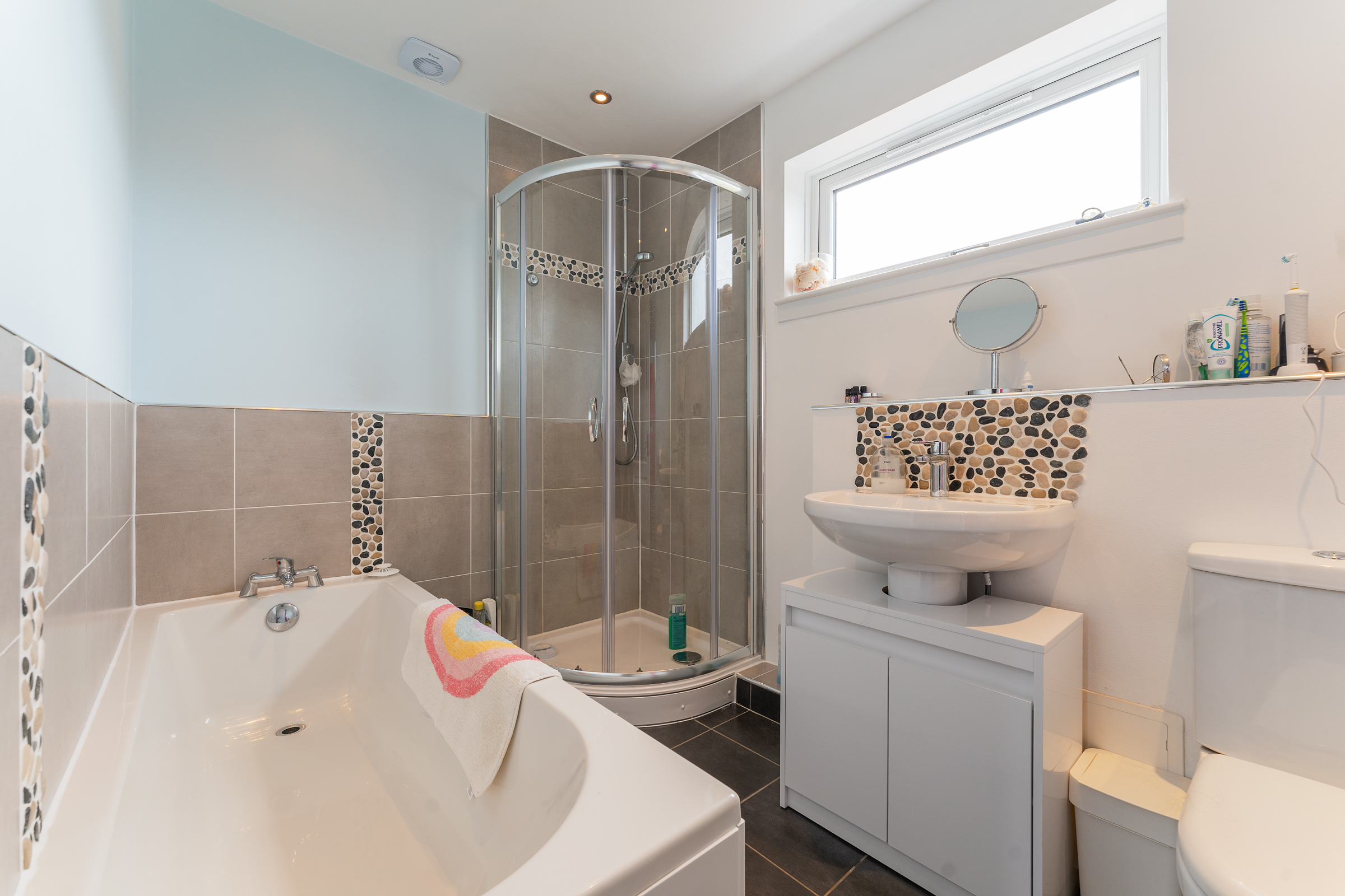 Upstairs, there are three well-proportioned bedrooms along with a stylish four-piece family bathroom. Externally, the property further benefits from a driveway and garage, providing excellent off-street parking and additional storage.